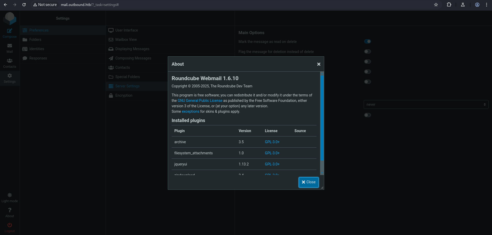 RHOSTS => mail.outbound.htb